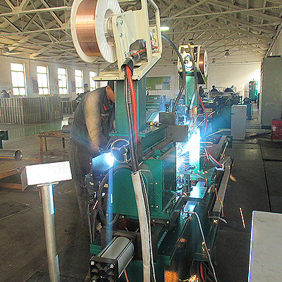 1、該焊接機(jī)床配有兩臺(tái)唐山松下YM-350KRⅡ型氣體保護(hù)焊機(jī)。兩端同時(shí)焊接,一次完成,是大批量生產(chǎn)的理想設(shè)備。